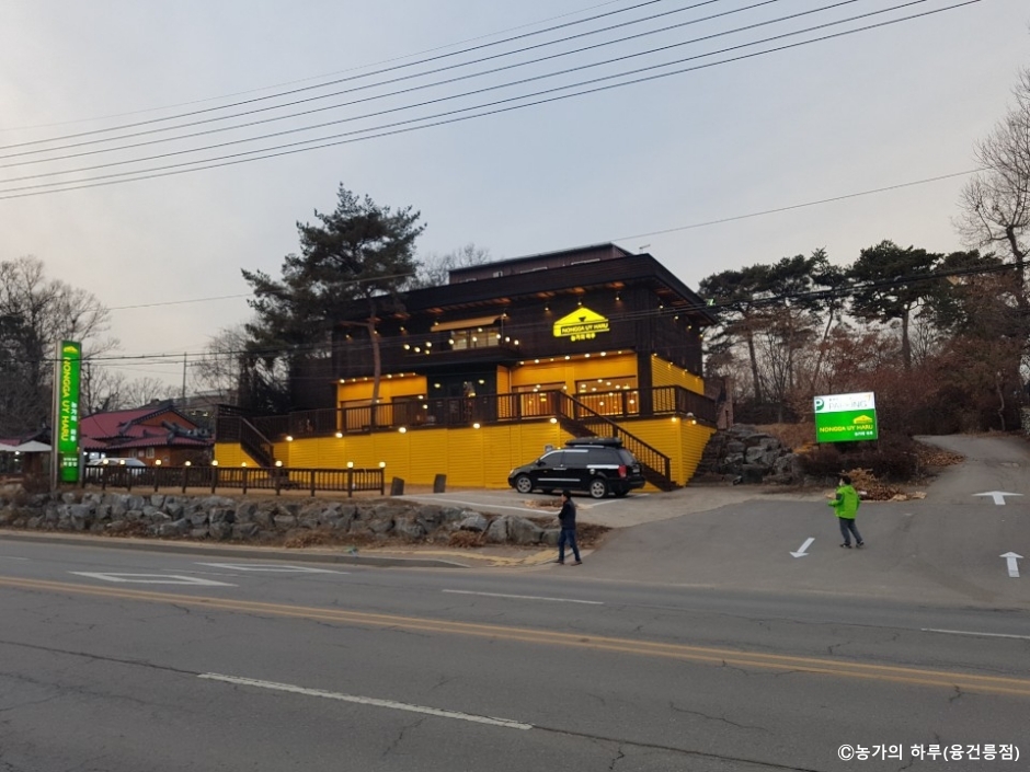 농가의 하루 융건릉점은 화성시 세자로에 있는 이탈리안 식당이다. 본점은 왕배산길에 있다. 본점과 비슷한 메뉴도 있지만 융건릉만의 메뉴도 있어 나름의 독특함을 간직한 식당이다. 융건릉점은 2층에 농가랜드라고 부르는 어린이를 위한 놀이시설이 있어 어린이와 동반해 방문하기 좋은 식당이다. 1층의 인테리어도 아기자기하고 깔끔하며 정원도 넓고 잘 가꿔져 있어 야외에서 아이가 노는 동안 음료를 즐길 수도 있다. 개별 룸이 있어서 예약하면 이용할 수 있다. 파스타면은 모두 생면을 사용하고 있다. 피자도 재료를 아끼지 않고 구워 풍미가 훌륭하다. 닭고기, 소고기, 돼지고기를 활용한 볶음밥이나 스테이크도 인기다. 주차장은 50대 이상을 주차할 수 있을 만큼 넓어서 이용이 편리하다. 식사 전후에 융건릉을 산책할 수도 있어 가족 나들이나 데이트 코스로 좋다.