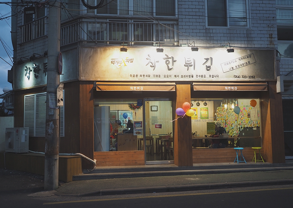 착한튀김은 제주시 화북 남문 주민센터 앞에 있다. 채널A의 먹거리 관련 프로그램에서 '착한 가게'로 선정되었던 분식집으로 통새우 튀김, 오징어튀김 등 튀김류를 주메뉴로 하며 떡볶이, 김밥 등을 판매한다. 이곳의 튀김은 얇은 튀김옷을 입혀 재료의 모습을 그대로 살려 튀겨내는 것이 특징이며 백련초로 담근 피클을 튀김과 함께 제공한다. 근처 여행지로 삼양 검은 모래 해수욕장, 원당봉 등이 있다.
