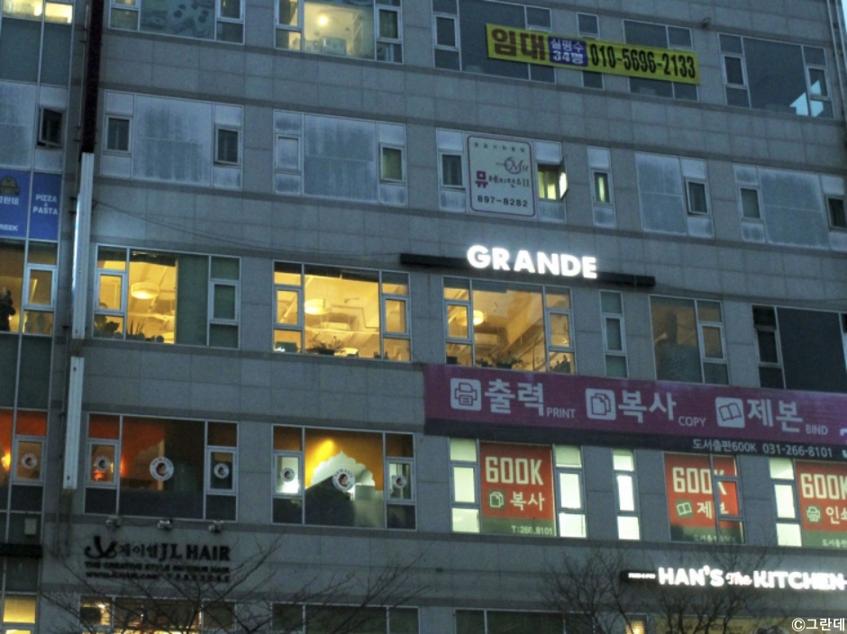 그란데는 용인시 수지구 죽전동 단국대 캠퍼스 앞에 있는 지중해식 이탈리안 레스토랑이다. 전통 화덕피자와 파스타, 리소토, 스테이크가 맛있는 곳으로 화덕 피자 장인이 피자를 만들고, 이탈리아 쉐프가 파스타를 만든다. 넓다, 크다는 뜻처럼 넓은 공간에서 편안하게 식사할 수 있는 그란데의 대표 메뉴는 매콤한 우민찌와 리코타가 어우러진 그란데 총각과 가락시장에서 매일 공수해 온 바질을 페스토를 만들어서 만든 파스타인 마레바질 파스타다. 이외 안심스테이크와 4인세트, 4가지 치즈피자인 포마지오 등이 있고, 점심에는 단국대 학생들을 대상으로 하는 런치 세트 메뉴도 있다. 인근에 수지도서관, 장욱진고택, 대광사 등이 있다.