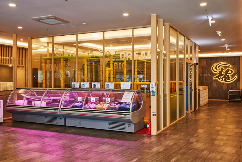 웅장한 크기가 입구부터 예상되는 녹산용가든은 넓은 주차장은 물론 깔끔한 외관과 소규모 인원부터 대규모 단체까지 수용이 가능한 실내 공간이 인상적인 곳이다. 고기를 파는 건물과 일본식 용장어를 파는 식당도 있으며 한쪽에 녹산용가든 자체에서 운영하는 카페도 있다. 한 장소에서 든든한 식사와 여유롭게 커피까지 가능하다. 취급 메뉴는 프리미엄 한우와 한돈이며 고기가 나오기 직전 불과 함께 기본 반찬들이 세팅된다. 유아 놀이방과 연회장도 완비되어 있으며 10인 이상 예약 시 차량 지원도 가능하다. 회식, 돌잔치, 회갑연, 생일파티를 하기에 안성맞춤인 장소이다.