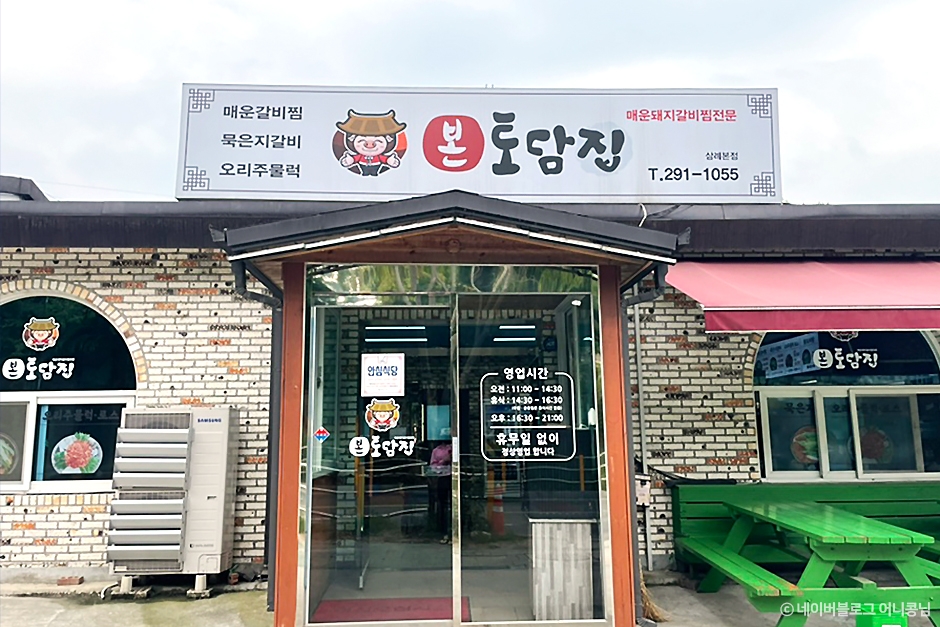 - 취급메뉴 : 매운갈비찜, 오리주물럭, 닭도리탕, 생삼겹, 김치찌개 등