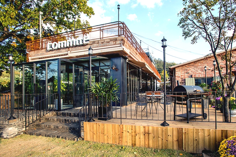 꼼데 바베큐 둔촌본점은 서울 둔촌동 서울중앙보훈병원 인근에 있다. 외부에는 테라스 테이블이 세팅되어 있어 야외에서 식사를 할 수 있다. 야외 캐노피 아래 테이블도 설치되어 있어서 취향에 맞게 테이블을 골라 앉을 수 있다. 이곳의 대표 메뉴는 자이언트 바베큐 플래터, 홈메이드 리코타 치즈 샐러드다. 밑반찬으로는 피클과 마늘쫑이 섞여 나오고 그 외에는 소스 3가지가 나온다. 이곳의 특별한 점은 메인 메뉴가 나오기 전 포테이토칩이 애피타이저로 제공된다는 것이다. 자이언트 바베큐 플래터에는 부챗살 스테이크와 돼지갈비, 백립, 통 닭다리 구이, 소시지, 버섯, 파인애플 등 넉넉하게 구성되어 있다. 식당과 가까운 곳에 공원과 영화관이 있어 식사 후 들르기 좋다.