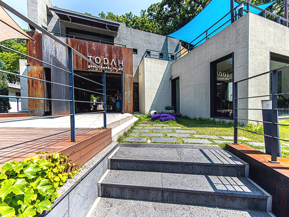 카페 토다는 신분당선 양재시민의숲역 5번 출구, 서초문화 예술공원 인근에 있다, 주택가에 있는 공원 같은 분위기로 주차장은 따로 없지만, 발렛파킹(유료) 서비스를 이용할 수 있다. 매장에서 직접 굽는 베이글과 브런치 세트 메뉴, 연어 샌드위치, 매일 달라지는 오늘의 수프가 주메뉴이다. 그 외 말차 빙수, 아메리카노, 시나몬 크림 라테 등을 맛볼 수 있다. 농림축산식품부 제공 안심식당이며 인근에 우면산 자연생태공원, 섬들 근린공원, 태봉산 공원이 있어 산책하기 좋다.