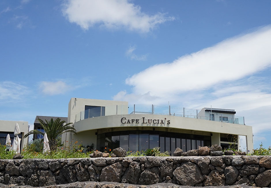 카페루시아는 올레길 8코스 대평포구 근처에 있다. 카페 내, 외부 공간에 테이블, 루프탑이 있으며 이 자리에서 박수기정을 가까이 조망할 수 있다. 정면으로 송악산과 형제섬이 보이고 날씨가 좋을 때는 가파도와 마라도까지 보이는 전망이 좋은 해변 카페이다. 잔디밭, 꽃밭이 잘 가꾸어져 있고 반려견 동반이 가능하며 노을이 아름답기로도 유명하다. 골목여행하기 좋은 대평리 안에 있으며 근처 여행지로는 논짓물, 화순금모래해수욕장, 중문색달해변이 있다.