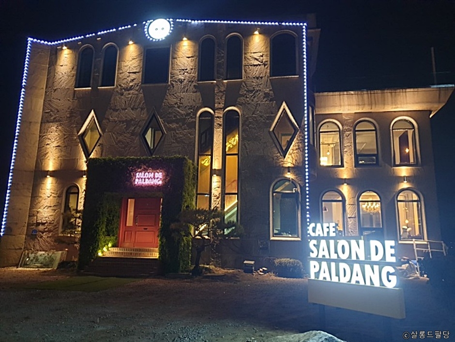 경기도 남양주시 팔당에 있는 한강뷰 카페이다. 2층 건물 입구에 살구색 문이 있다. 은은한 조명과 편안한 분위기로, 실내 천장에 흰 천이 드리워져 있다. 통창으로는 한강이 보인다. 유럽풍의 금색 소파가 놓여 있는 곳도 있다. 계단을 통해 2층으로 올라가면 다양한 와인과 술이 진열된 바 테이블이 있다. 3층에는 탁 트인 시야로 한강이 보이는 루프탑이다. 저녁노을이 지는 풍경과 밤 야경을 볼 수 있다. 새벽까지 영업한다. 1층 야외에도 파라솔 테이블이 있다. 팔당대교 인근 드라이브 코스에 있다. 한강 건너편이 스타필드 하남이 있다.