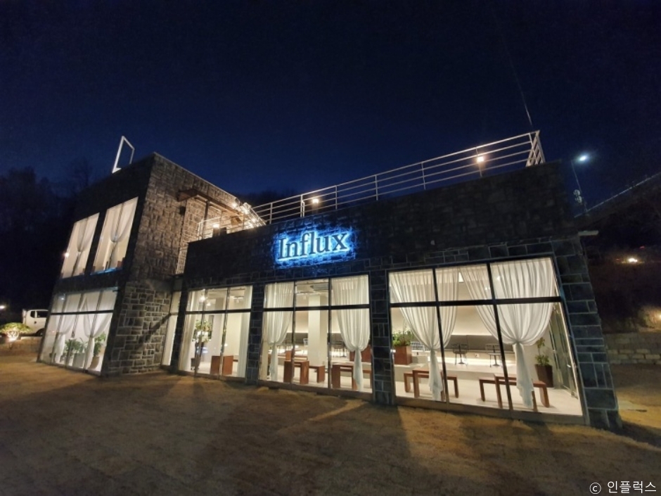 경기도 남양주시에 있는 카페다. 하늘 계단과 넓은 잔디 정원이 매력적이며 모던한 분위기를 자아낸다. 카페의 초록 정원과 파란 하늘이 어우러져 멋진 뷰를 만들어낸다. 카페 내부도 식물들이 있어 자연에서 힐링하는 기분을 느낄 수 있다. 실외 및 실내 층별 분위기가 다르며 원하는 곳의 좌석을 선택하여 앉을 수 있다. 소프트크림라떼, 버터크림라떼, 에그크림커피, 아메리카노 등 여러 가지 음료와 브런치, 피자, 샐러드, 샌드위치 등 다양한 먹을거리를 즐길 수 있다. 2022년 8월 말에 인플럭스 용인 고기동점도 오픈하였다.