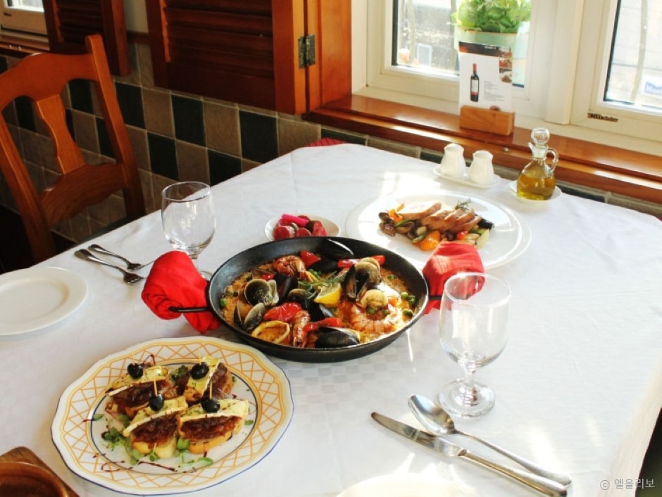 - 대표메뉴 : Segovia Set 2인 (빵, 샐러드, 하몬&치즈, 감바스, 이베리코 스테이크, 해산물 빠에야, 디저트, 커피)