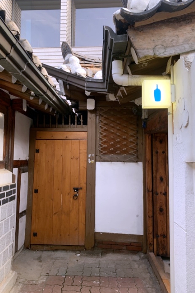 블루보틀 삼청 한옥점은 서울 종로구 소격동에 있다. 3호선 안국역 2번 출구 국립현대미술관 서울 인근에 있다. 이곳은 주차 공간이 협소하여 대중교통을 이용하거나 유료주차장에 주차해야 한다. 이곳은 앱으로 예약을 할 수 있다. 예약금은 1인당 1만 원이다. 이곳에 오면 좁은 골목을 지나 매장 내부에 들어올 수 있다. 내부에는 테이블이 4개 정도 있고 한 타임에 3~4팀의 예약만 받고 있다. 이곳의 대표 메뉴는 페이스트리 페어링이다. 이 메뉴는 3가지의 음료와 3가지의 디저트가 나온다. 현장에서 메뉴를 선택해 주문할 수 있다. 식당 인근에는 경복궁, 박물관, 청와대 만남의 장소, 문화회관, 미술관 등이 있어 연계 관광이 가능하다.