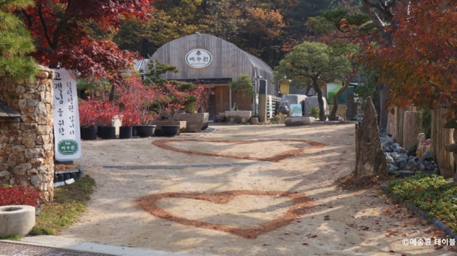 경기도 용인시 수지구 동천동에 있는 예송원 테이블은 정원이 아름다운 브런치 카페다. 손님들에게 무료로 개방하고 있는 6,611㎥의 정원에는 여러 가지 꽃나무와 향나무, 적송, 백송 등이 잘 가꿔져 있다. 산책길에는 중간마다 쉼터가 있고, 넓은 장독대는 이 집의 독특함 중 하나이다. 분위기가 좋아 데이트 장소로도 인기가 많고, 가족끼리 주말 나들이 겸한 식사 장소로도 손색이 없다. 예송원 수제 함박스테이크, 그릴드 씨푸드 샐러드, 전복 상하이 오일 파스타, 스테이크 피자, 꽃등심 스테이크, 커피 등 다양한 메뉴를 갖추고 있고, 분당과 용인에 걸쳐있어 분당과 용인 모두 접근성이 좋다.