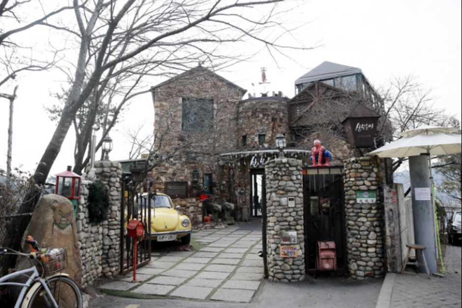 산모퉁이 카페는 3호선 경복궁역 3번 출구 부암동행정복지센터 인근에 있다. 지하, 지상 2층으로 되어 있고 드라마 커피 프린스의 촬영 장소였다. 지하는 인형이 많아 동심을 느낄 수 있다. 1층은 야외석, 2층은 드라마 촬영장 소품과 사진으로 장식되어 있다. 창밖 풍경은 서울 시내가 보이고, 북한산을 한눈에 볼 수 있다. 이곳의 대표 메뉴는 아메리카노와 조각 케이크이다. 아메리카노 리필은 추가 요금을 지불하면 된다. 이곳은 주차 시설이 없어 대중교통을 이용하는 것이 좋다. 인근에는 종로 부암동길, 환기미술관, 윤동주 문학관, 석파정 등이 있어 연계 관광이 가능하다.