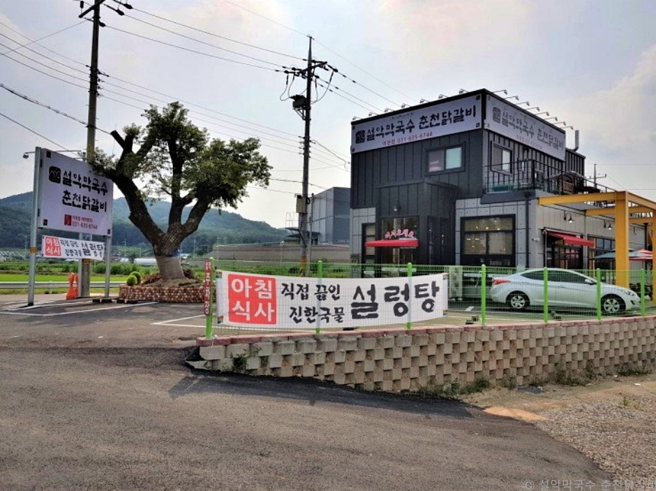 설악막국수춘천닭갈비 이천점은 이천시 모가면에 있는 닭갈비 전문점이다. 내부가 넓고 쾌적하며 한쪽에 개방형 방이 있다. 설악막국수춘천닭갈비 이천점은 국내산 다리 살만 사용하므로 잡내가 나지 않는다. 대표 인기 메뉴인 닭갈비는 초벌 해서 나오므로 금방 먹을 수 있다. 또한, 숯불에 타지 않도록 직원이 잘 구워주므로 편하게 먹을 수 있다. 닭살이 숯 향이 나면서 부드럽고 양념이 아주 강하지는 않다. 비빔막국수는 간이 세지 않고 양념이 맛있어 닭갈비와 함께 인기 메뉴이다. 메밀전병은 속이 꽉 차 있고, 담백한 맛이다. 밑반찬으로 나오는 동치미와 새콤하고 아삭한 무생채, 상추 등은 셀프 코너에서 추가로 이용할 수 있다. 이른 아침부터 영업을 시작해서 아침 식사를 할 수 있고, 인근에 이천 농업테마공원, 민주화운동기념공원, 영창대균묘 등이 있고, 3km 이내에 골프장이 많이 있다.