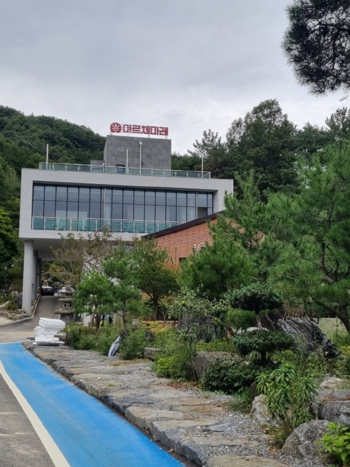 아르체마레는 충청남도 금산군 복수면 수영리에 있는 베이커리 카페다. 숲속에 터를 잡은 덕분에 자연 친화적이다. 모던한 외관과 깔끔한 내부 인테리어도 눈에 띈다.
