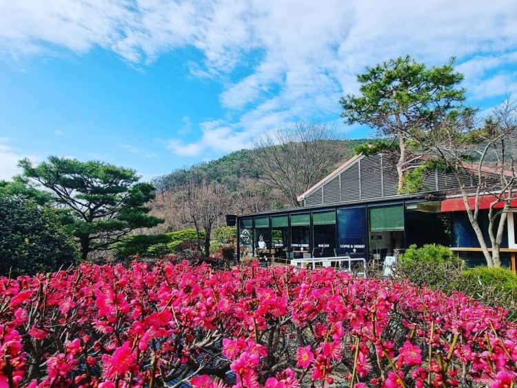 블루닷카페는 경상북도 칠곡군 석적읍 망정리에 있다. 널찍한 정원 덕분에 분위기 좋은 카페로 알려져 많은 사람이 찾는다. 소형견과 동반 입장할 수 있으며, 이 경우 외부 시설만 이용할 수 있다.