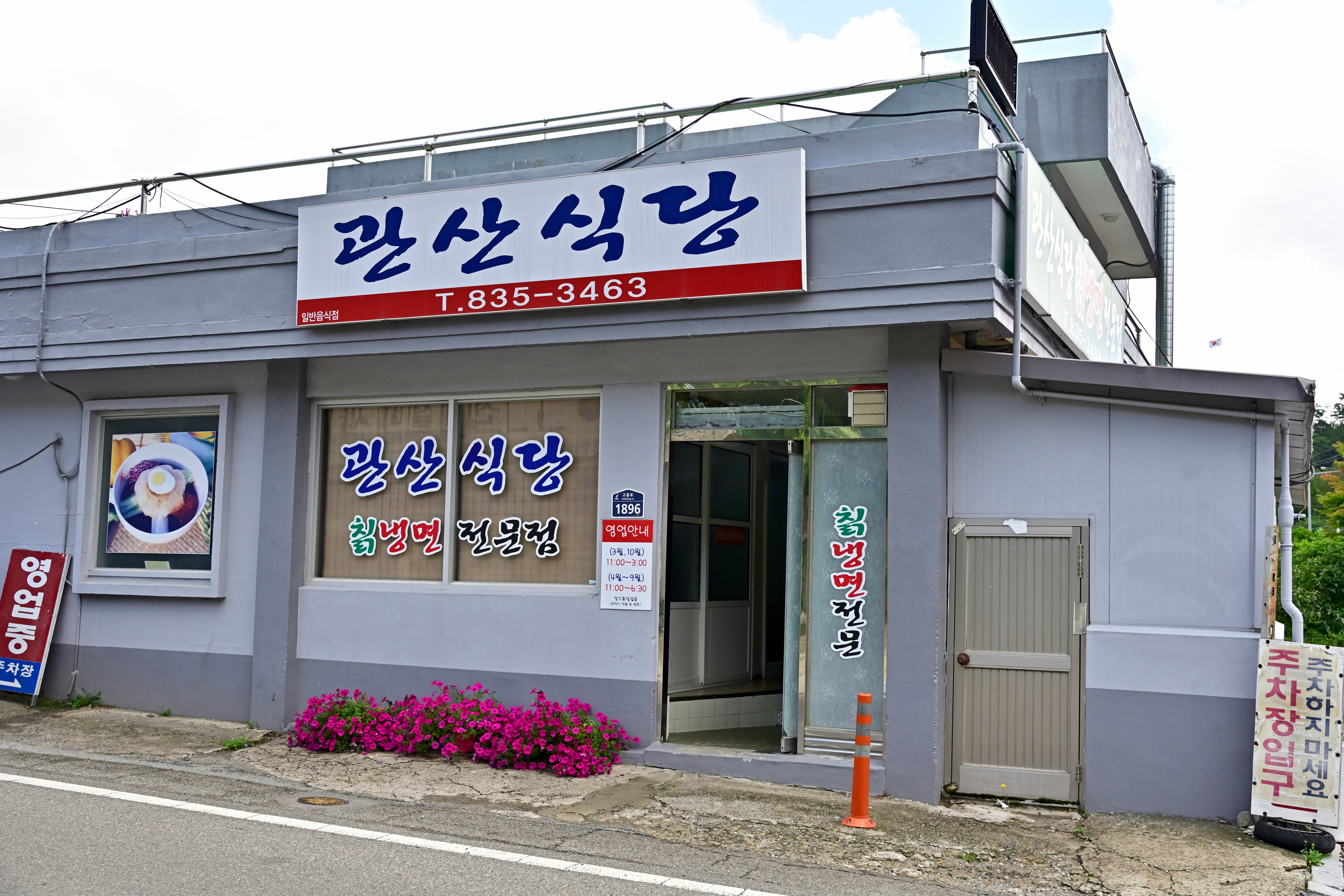 냉면은 대체로 내륙지방의 음식이다. 고흥은 바다가 많은 지역이다. 하지만 고흥에서도 맛있는 냉면을 먹을 수 있는 곳이 바로 관산식당이다. 이곳에서는 물냉, 비냉, 회냉면, 평양, 함흥 이런 말은 전혀 들리지 않는다. 그냥 물냉 보통, 곱빼기만 있다. 살짝 검은 칡 면에 보라색 양배추와 오이, 계란 반쪽이 다인 냉면이다. 심지어 물냉인데 육수는 보이지 않는다. 다만 깻가루가 뿌려진 살얼음 한 덩어리가 전부이다. 이제 할 일은 얼음이 녹을 때까지 살살 비비기만 하면 된다. 한입 베어 물면 눈으로 예상했던 모든 예상은 사라진다. 안타깝지만 늦가을부터 이른 봄까지는 운영하지 않으니 확인하고 가야 한다.