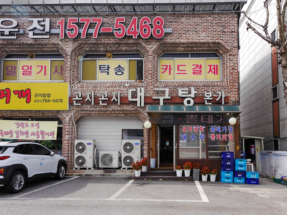 곤지곤지대구탕은 곤지암천 근처로 곤지암에서 오래된 대구탕 맛집이다. 도로변에 있어 접근성이 좋은 이곳은 식당 앞에 넓은 주차장이 있어 주차를 편하게 할 수 있다. 붉은 벽돌 건물 1층으로 외관은 작아 보이지만 깔끔하고 넓은 내부에 테이블로 되어 있다. 이 식당은 대구뽈테기를 이용한 탕과 찜이 주메뉴로 구성되어 있고 음식이 빨리 나와 회전율이 높다. 또한, 1인분씩 나오는 탕은 푸짐한 양과 맛을 자랑한다. 정갈한 기본 반찬에 쌀과 김치는 국내산을 사용하고 모든 메뉴는 포장이 된다. 근처에 곤지암천이 있으며 경강선 곤지암역이 있어 대중교통으로 이용할 수 있다.