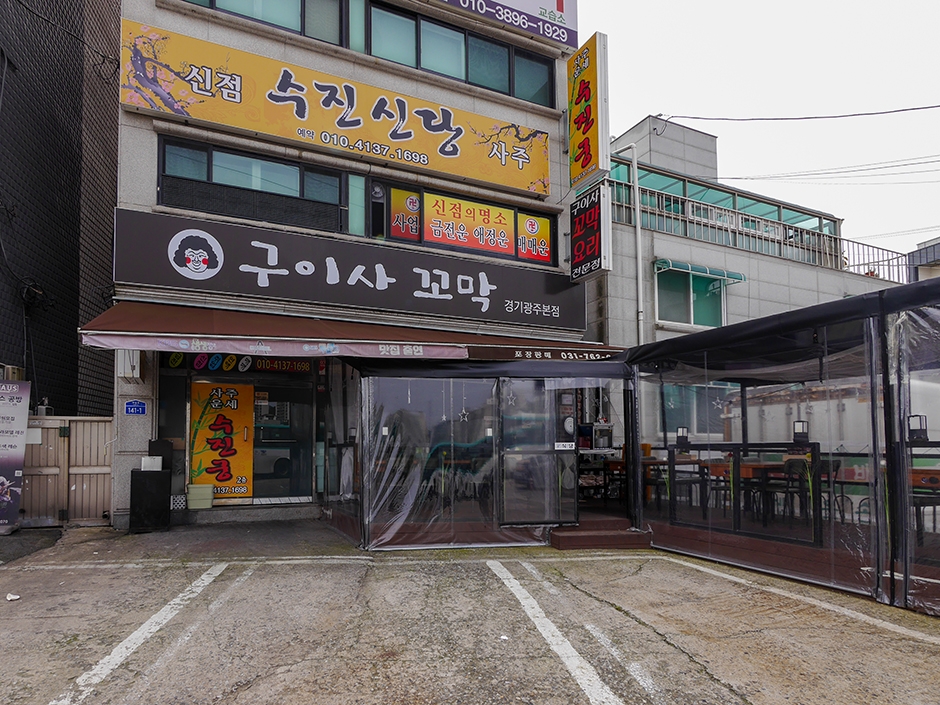 구이사 꼬막 요리 전문점 경기광주본점은 광주시 공설운동장 근처 파발교 건너편에 있는 꼬막 음식전문점이다. 건물 1층이 자리한 이곳은 매장 앞에 3대 정도 주차할 수 있으며 건너편 광주시 공설운동장 공영주차장을 무료로 이용할 수 있다. 매장에 들어가는 입구에 영업시간 및 주차장 안내가 잘 되어 있다. 아담한 매장 안에는 8개의 테이블이 있고 야외 테라스에는 단체석도 있어 각종 모임을 할 수 있다. 이 식당은 단품 메뉴도 잘 되어 있지만 다양한 꼬막 음식을 맛볼 수 있는 꼬막한상이 세트로 잘 구성되어 있다. 벌교 산지 직송 꼬막을 사용하여 음식을 제공하며 모든 메뉴를 포장할 수 있다.