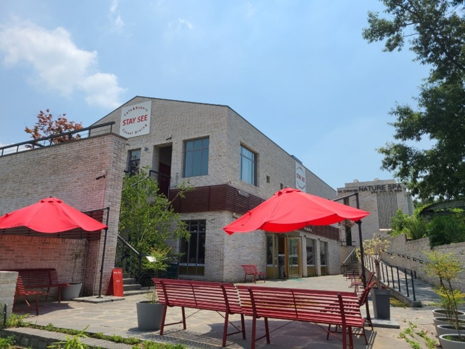 파주 심학산둘레길에 있는 스테이씨는 깔끔한 인테리어와 큰 창문 밖으로 보이는 풍경이 아름다운 브런치 카페다. 층고가 높은 내부는 모던한 분위기의 복층구조로 되어 있고 반려동물과 함께 입장할 수 있는 카페다. 아래층은 강남면옥과 찜질방인 '네이쳐스파'가 같이 있어 스테이씨와 함께 휴식을 즐길 수 있는 장소이다.