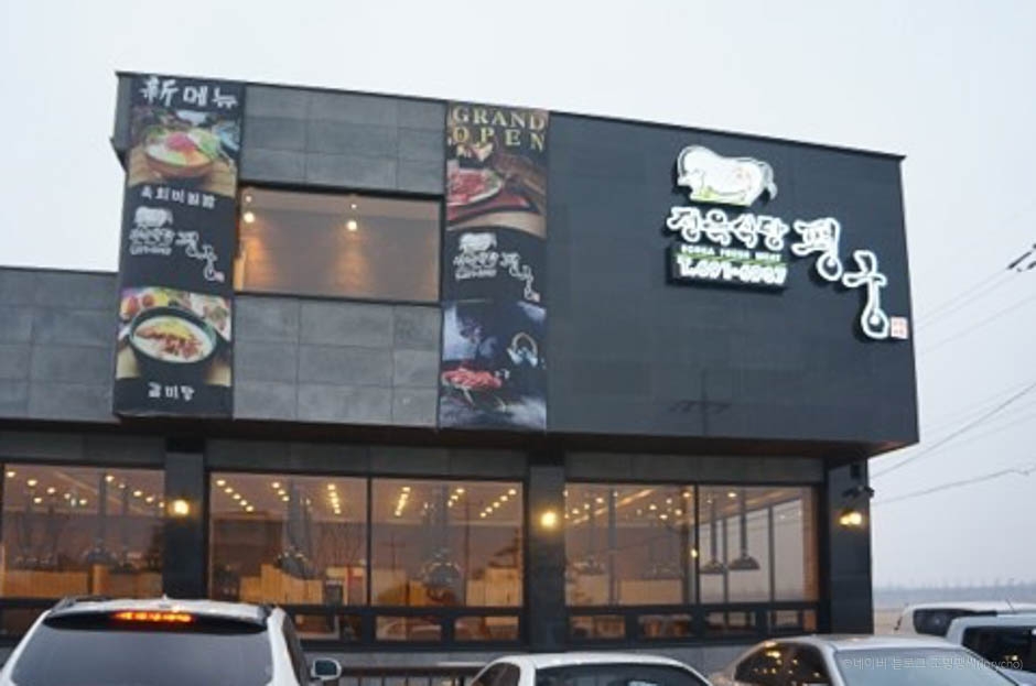 평궁은 평택시 팽성읍에 있는 소고기 맛집이다. 가게 앞에 주차할 공간이 많고 시야가 확 트인 논과 평야를 보며 여유롭게 식사할 수 있다. 정육식당이라 신선한 소고기를 저렴한 가격에 맛볼 수 있고 내부가 넓어서 단체모임 하기 좋다. 안쪽은 큰 룸 형식으로 되어 있다. 평궁은 국내산 육우를 취급하는데 소를 잡는 날은 간과 천엽이 서비스로 제공된다. 특수모듬을 시키면 안창살, 치마살, 새우살, 꽃살, 제비살, 토시살, 대패등심이 나온다. 육회나 육사시미 메뉴도 있고 식사 메뉴로 된장찌개와 냉면, 누룽지가 있다.