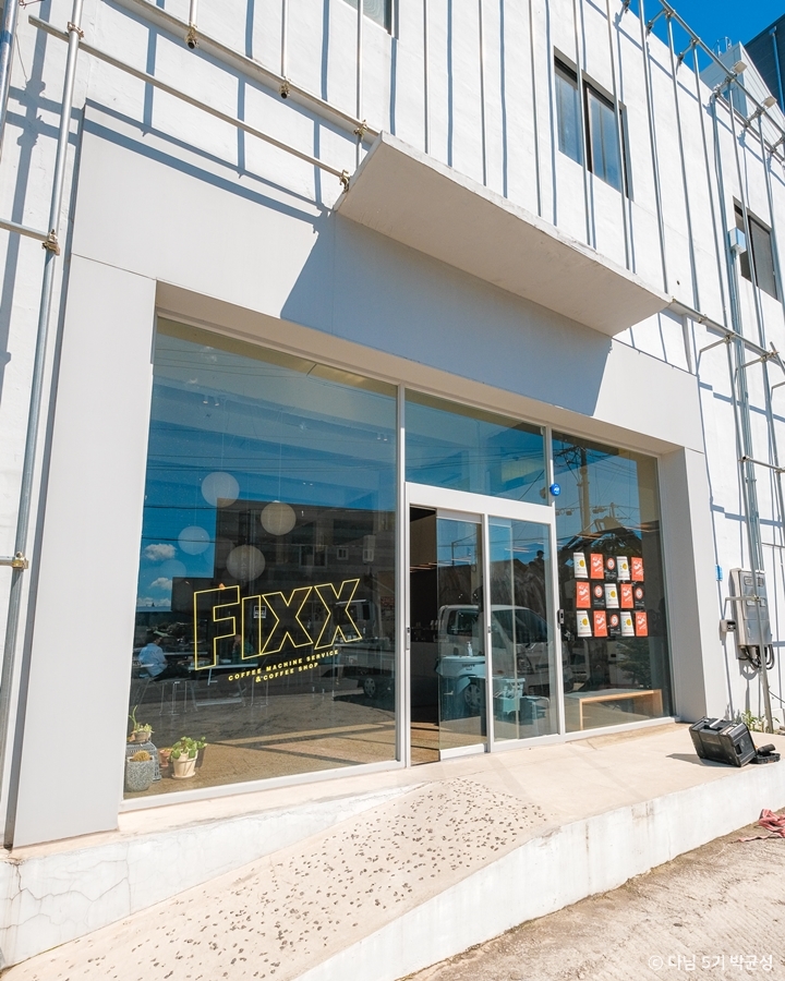 제주 시내 아라동에 본점을 둔 픽스커피는 현지인들 사이에서 커피 맛이 좋은 카페로 손에 꼽힌다. 화북공업단지 인근에 새롭게 문을 연 공단점은 마치 공사 중인 건물처럼 꾸며진 외관이 인상적이다. 카페 내부로 들어서면 높은 층고와 커다란 조명이 색다른 분위기를 자아낸다. 메뉴는 본점과 동일한데, 라테를 의미하는 시그니처 메뉴 픽스커피가 특히 인기다. 픽스커피 공단점에서는 카페 외에 편집 숍과 전시공간의 기능도 함께 한다. 최근에는 사회적 이슈로 떠오른 해양 쓰레기와 관련한 전시를 선보였는데, 실제 일상생활에서 흔하게 사용되는 플라스틱들을 전시해 관람객들에게 큰 호응을 얻었다.