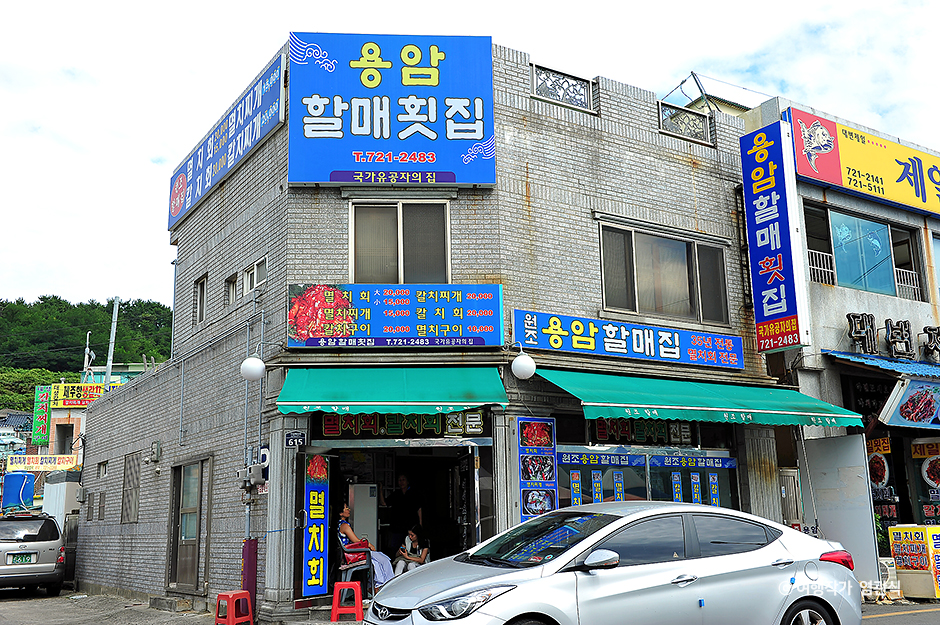 기장의 특산물 멸치와 갈치를 전문으로 요리하는 용암할매횟집은 대변항 맛집으로 유명한 곳이다. 멸치회와 갈치회를 신선하게 즐길 수 있으며, 찌개도 겸해서 먹으면 더할 나위 없이 좋다. 용암할매횟집의 멸치회는 특이한 것이 멸치회를 손질할 때 막걸리에 씻어내며 양념에도 막걸리를 더한다고 한다. 그래서 멸치회를 씹을 때 감칠맛과 담백함이 더해지게 되고 비릿한 맛은 찾아보기 힘들다. 멸치회를 먹을 때는 소주보다는 막걸리를 겸해서 먹는 것이 궁합에도 좋고 입안에 깔끔함을 더해주게 된다. 가족들과 함께 방문할 예정이라면 잔가시와 내장의 쌉싸름한 맛 때문에 아이들에게는 멸치보다는 갈치구이를 주문하고 어른들은 멸치회나 멸치찌개를 먹는 것을 추천한다. 더불어 방문한 김에 멸치젓갈을 구매해 주변 사람들에게 선물한다면 좋을 것이다. 용암할매횟집은 전국 지방자치단체 인증, 지역 현지인 및 파워블로거 평가단 추천 등을 통해 전국맛집 TOP100 맛집으로 선정되었으며, KBS‘무한지대’, 채널A‘관찰카메라’ 등의 맛집 프로그램에도 소개된 바 있다.