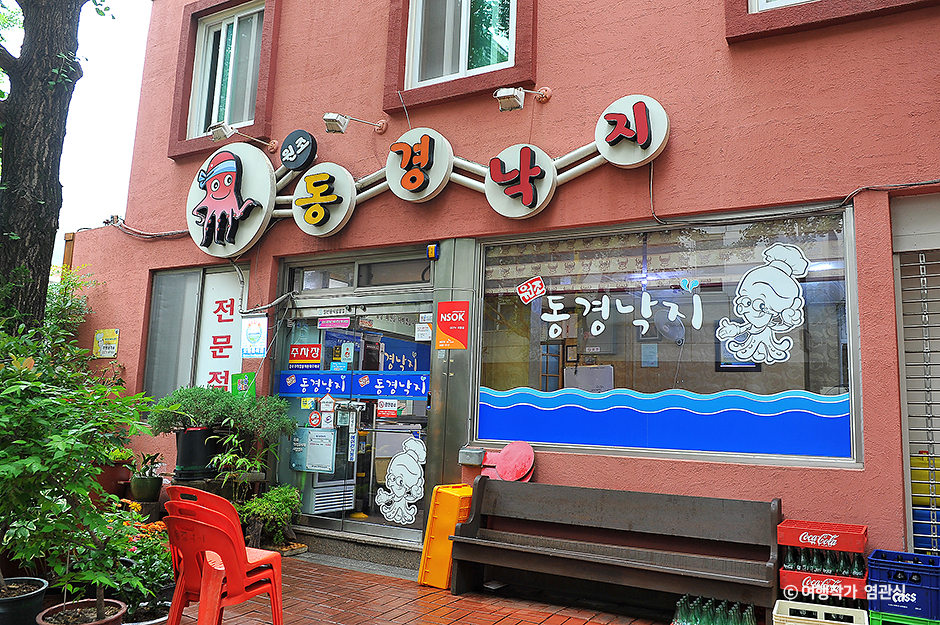 원조동경낙지는 순천 현지인들도 인정하는 맛집으로, 매일 아침 일찍 신선한 낙지를 산지에서 직접 공수해 오는 낙지 전골 전문점이다. 단일 메뉴로 오직 낙지 전골만 취급하므로 따로 주문할 필요 없이 자리에 앉으면 인원수대로 음식이 세팅된다. 낙지 전골은 담백한 육수에 손으로 깨끗이 손질한 낙지와 당면과 채소 등이 듬뿍 들어 있어 풍성하고 깊은 맛이 난다. 막 나왔을 때는 맑은 국물처럼 보이지만 잘 섞어 주면 빨간 양념이 섞이고 국물이 조금 졸아들 만큼 끓여 내면 맛깔스럽고 얼큰하다. 함께 나오는 다양한 밑반찬을 골고루 맛볼 수 있다. 특히 큼직하게 담아 주는 물김치는 감칠맛과 시원함으로 낙지 전골의 매운맛을 중화시켜주는 역할도 한다. 밥은 일반 공깃밥이 아니라 큼직한 양푼 대접에 담겨 나온다. 전골이 보글보글 끓으면 밥에 덜어 올리고 김 가루도 솔솔 뿌려 비벼 먹는 것이 별미다.