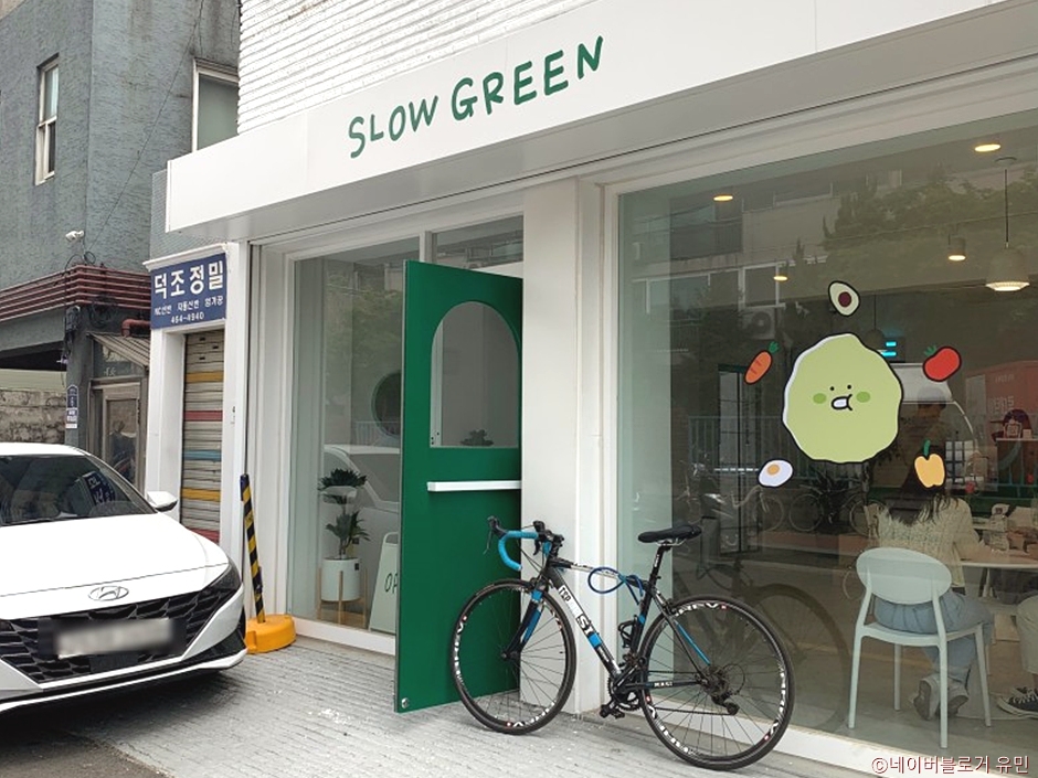 슬로우그린은 수인분당선 서울숲역 2번 출구 성원중학교 인근에 있다. 매장에 별도의 주차장은 마련되어 있지 않다. 방문 시 버스나 지하철 등 대중교통수단을 이용하는 것이 편리하다. 이곳 내부는 화이트톤으로 깔끔하고 깨끗한 느낌이다. 대표 메뉴로는 에그듬뿍 샌드위치, 더블햄치즈 샌드위치가 있고, 그 외 에그사과 샌드위치, 에그새우 샌드위치, 핫칠리에그 샌드위치, 와사비크랩 샌드위치 등 다양한 메뉴가 있다. 서울숲이 가까이에 있어 가볍게 산책할 수 있고, 성수동카페거리, 성수동구두테마공원, 뚝섬유원지 등이 있어 연계 관광을 할 수 있다.