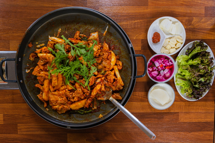 철판에서 볶아먹는 매콤한 닭갈비가 맛있는 닭갈비 전문점이다. 다양한 사리를 넣어 닭갈비와 함께 맛볼 수 있다.