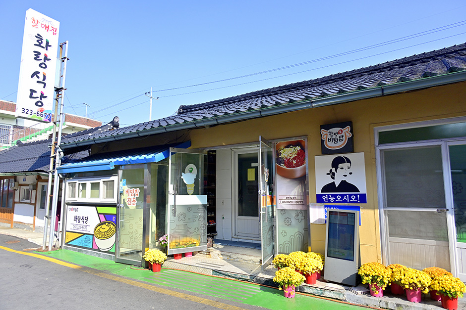 한우로 유명한 함평에 위치한 화랑식당은 신선한 한우의 허벅지나 엉덩이 살 등 기름기 없는 살코기 부위를 사용한 육회가 유명한 곳이다. 고소한 참기름을 얹은 육회와 예전 함평에서 먹던 방식대로 돼지비계 한·두 젓가락을 넣어 적당량의 고추장과 취향에 따라 무생채, 겉절이를 넣어 비벼 먹는 육회비빔밥이 제공된다. 기본으로 나오는 맑은 선짓국도 맛이 뛰어나다. 그 외에도 생고기, 구이류, 낙지비빔밥, 산낙지 등 신선한 재료의 맛으로 소문난 식당이다. 주변에 함평 터미널과 함평오일장이 열리는 함평천지전통시장이 있어 교통도 편리하고, 볼거리도 가득하다.