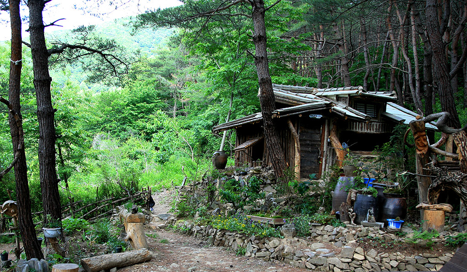 단양팔경 중 네 곳의 경승지가 나란히 붙어 있는 선암계곡 아래 쪽 산 위에 있는 이색 레스토랑 겸 카페다. 숲속의 휴식은 우선 외관이 아주 독특하다. 굵고 긴 통나무 수십 그루를 60도 각도로 끝이 서로 맞닿게 빙 둘러 세우고 그 사이를 유리로 치장을 했다. 안에 들어가면 창을 빙둘러 탁자가 놓여있고 천장이 겨우 올려다보일 정도로 높고 시원하다. 연인끼리 찾아간다면 분위기만으로도 밥값은 하고 나오는 곳. 이 집의 주메뉴는 산채요리. 도락산과 황정산 자락에서 채취한 나물로 비빔밥과 반찬을 해 낸다. 여기에 한식과 어울리지 않을 듯한 와인도 무척 잘 어울린다. 나물을 싫어하는 아이들을 위해서는 직접 만든 돈까스도 마련되어 있다.