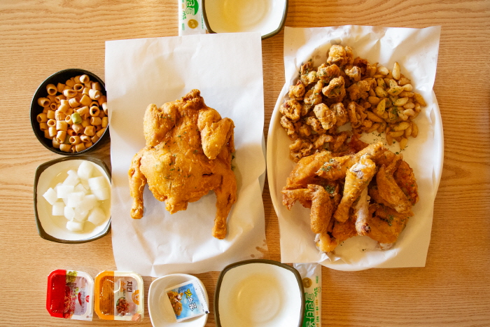 평창군 평창읍에 위치한 바삭하고 담백한 시장표 옛날통닭 맛집이다.