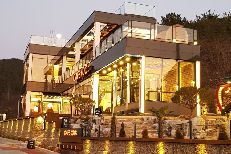 바다가 보이는 루프탑 카페쿠는 1,500평의 넓은 공간에 있는 주차 걱정 없이 편하게 차를 가지고 올 수 있고, 8인 이상 방문 시 프라이빗 룸 사용도 가능하다. 카페 내부는 깔끔하고 세련된 인테리어로 여러 종류의 식물들로 꾸며 놓아 앉아 있으면 절로 힐링 되는 기분이다. 1, 2층은 전체 통유리로 의자에 앉아 여유 있게 커피를 마시며 바다를 볼 수 있다. 또한, 루프탑이 있는 3층은 선베드와 포토존이 있어 방문객들이 가장 많이 찾는 곳이다. 카페쿠의 시그니처 메뉴는 달콤한 라떼에 설탕 코팅을 한 브륄레 쿠와 청포도 에이드에 보라색 블루 멜로 티 얼음으로 포인트를 준 상큼한 그레이프 멜로 에이드이다. 그 외에 다양한 커피 종류와 베이커리가 준비되어 메뉴 선택의 폭이 넓다.