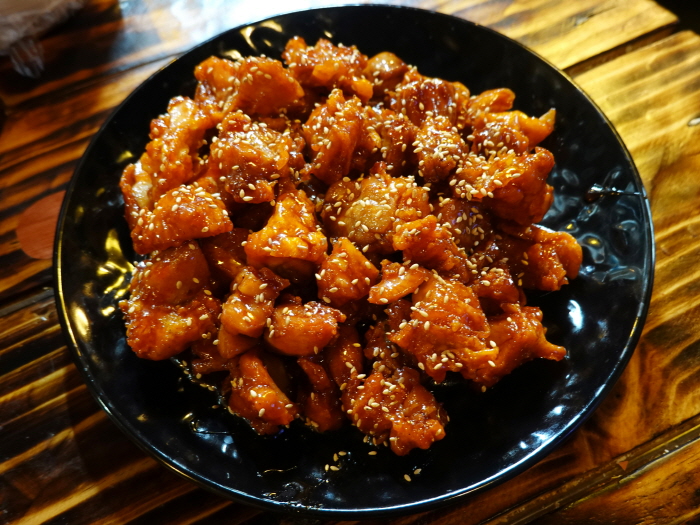 옛날 맛 그대로 느낄 수 있는 장터 치킨으로 장터 치킨과 여러 튀김을 판매하는 음식점이다.