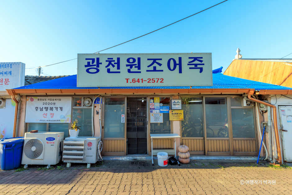 광천원조어죽은 충남 홍성군 광천읍에 자리 잡고 있다. 1990년 개업한 이래 30년 넘게 한자리에서 영업 중인 노포다. 대표 메뉴는 추어어죽이지만 여느 음식점과 다른 특성을 지녔다. 호박을 먹인 자연산 미꾸라지를 쓰기 때문이다. 호박을 먹은 미꾸라지는 이물질을 배설해 깔끔한 맛을 낸다. 추어어죽 이외에 소머리수육, 추어튀김, 돼지족발 등도 판다. 특히 돼지족발의 생김새는 족탕에 들어간 족발과 비슷하다. 하얀 족발 위에 고춧가루 등을 뿌려 나오는데, 특제 양념에 찍어 먹으면 또 다른 별미다.
