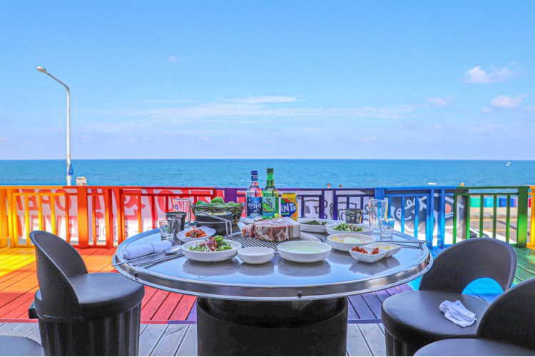 무지개 해안도로 변에 있는 돈고팡은 무지개 컬러의 테라스가 있는 건물이라 쉽게 찾을 수 있다. 야외 테라스에서 바다를 보며 흑돼지 고기를 먹을 수 있는 돈고팡은 제주 공항 근처에 있어 제주에 오고 가는 여행객들이 자주 찾는다. 제주산 흑돼지 근고기가 이 집 대표 메뉴로 두툼한 목살과 오겹살을 큼직큼직 잘라 멜젓에 찍어 먹으면 이 맛에 반해 또 찾게 된다. 점심에는 흑돼지, 백돼지 중 목살, 오겹살, 찌개, 공깃밥 2개, 계란찜이 나오는 세트 메뉴가 있어 점심에 와서 먹기 좋다. 돈고팡 본점은 용두암 해안도로로 유명한 무지개 해안도로가 앞에 있어 밥 먹고 산책하기에도 좋은 곳이다.